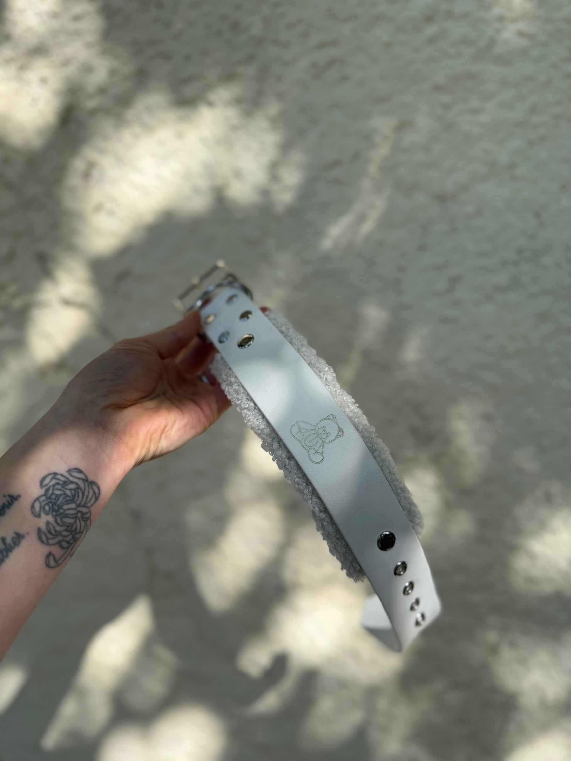 La doublure est en "Sherpa" Fixée par dessus une lanière de biothane.