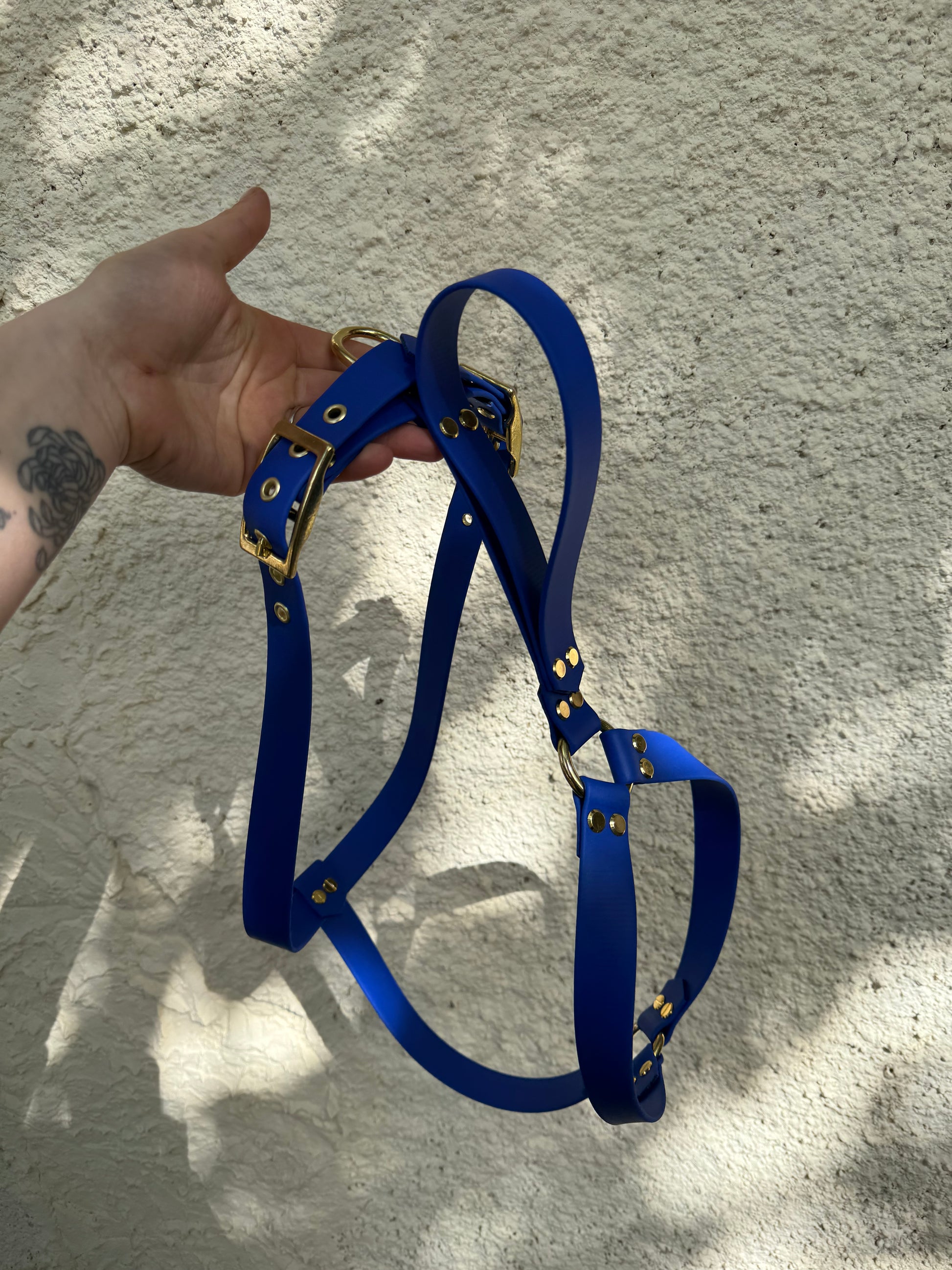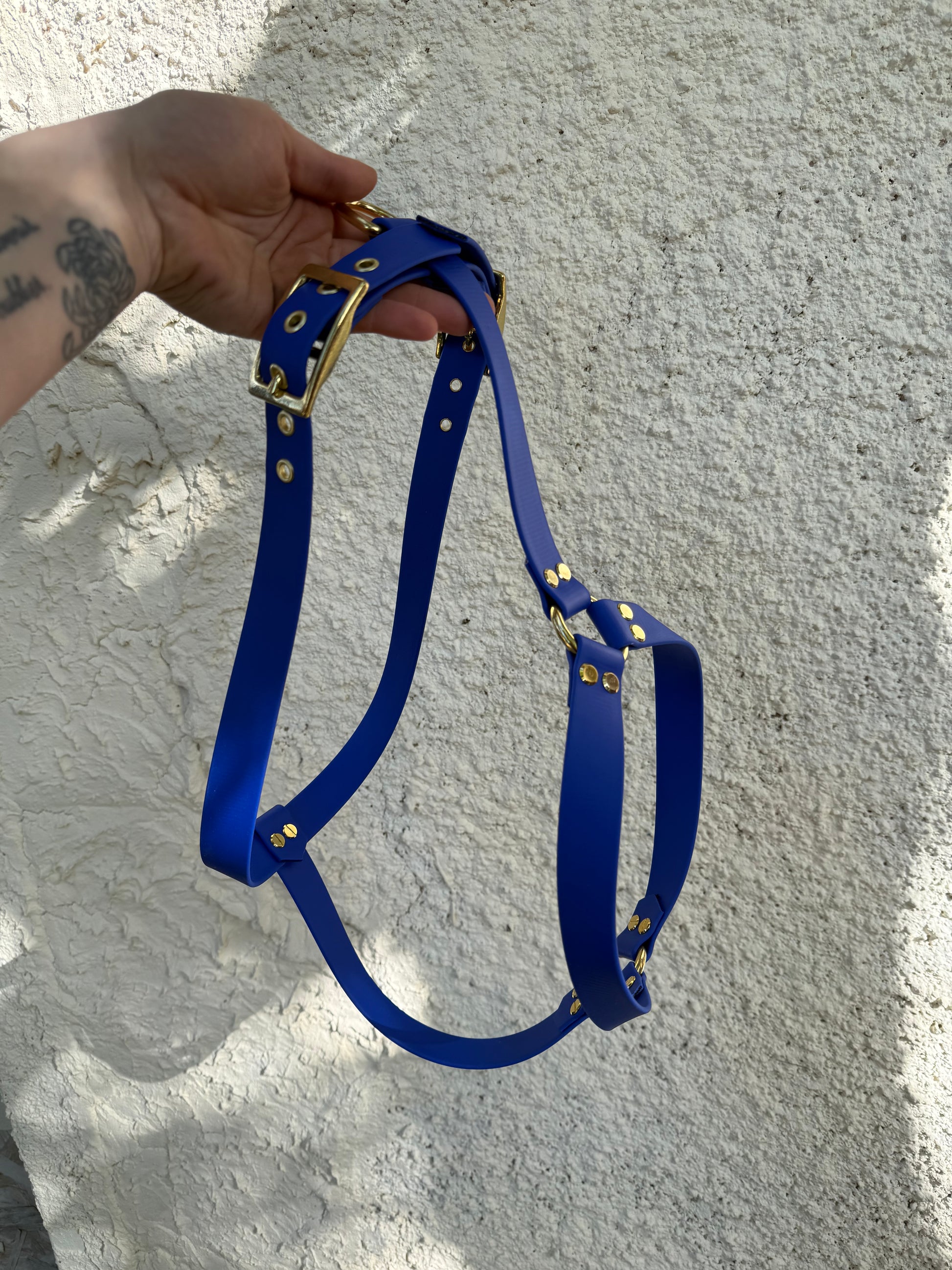 Chaque partie du harnais peut être personnalisée de la couleur de biothane choisie (Voir photo 4 )