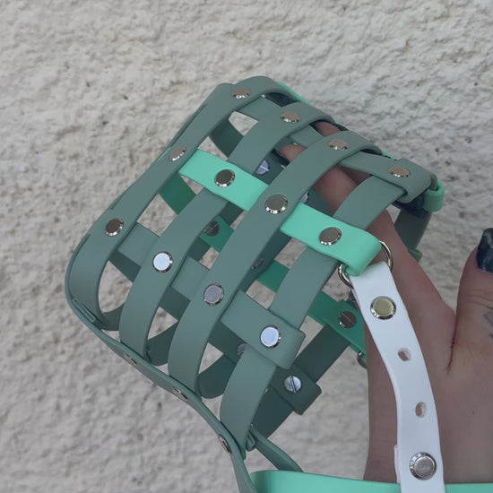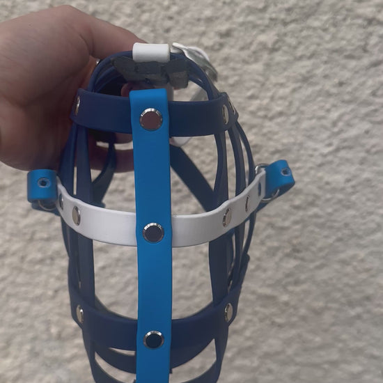 Cette muselière en Biothane type cage sur mesure allie robustesse et confort. Conçue pour s’adapter parfaitement à la morphologie de votre animal, elle garantit une tenue sûre sans compromettre sa respiration ni son bien-être.