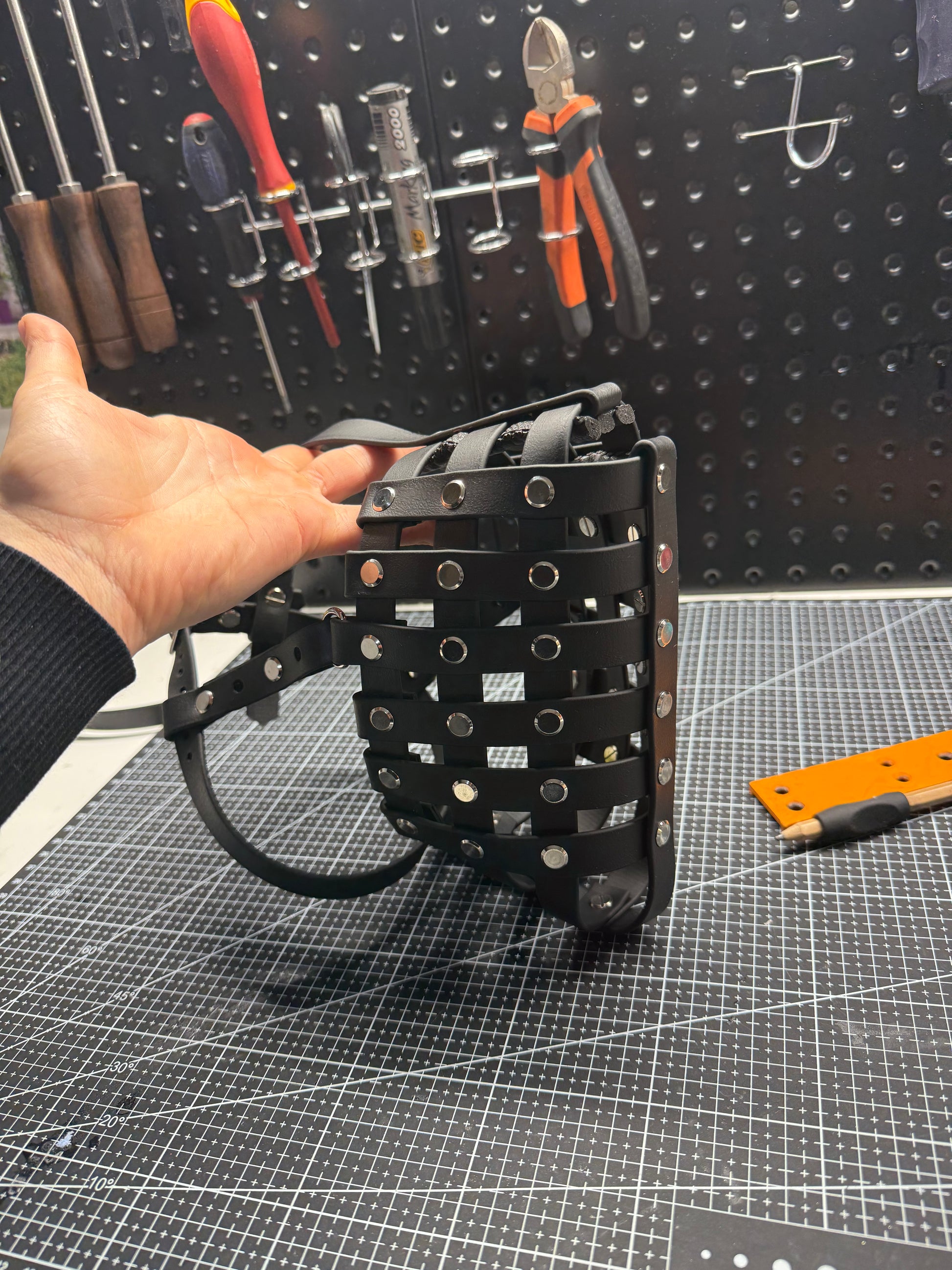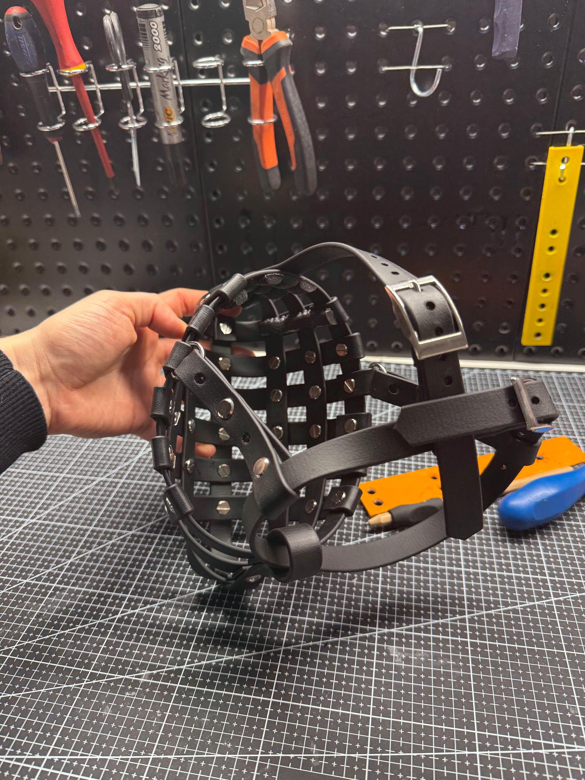 Cette muselière en Biothane type cage sur mesure allie robustesse et confort. Conçue pour s’adapter parfaitement à la morphologie de votre animal, elle garantit une tenue sûre sans compromettre sa respiration ni son bien-être. Cette muselière est plus renforcée et plus "fermée" que le modèle "aérée".